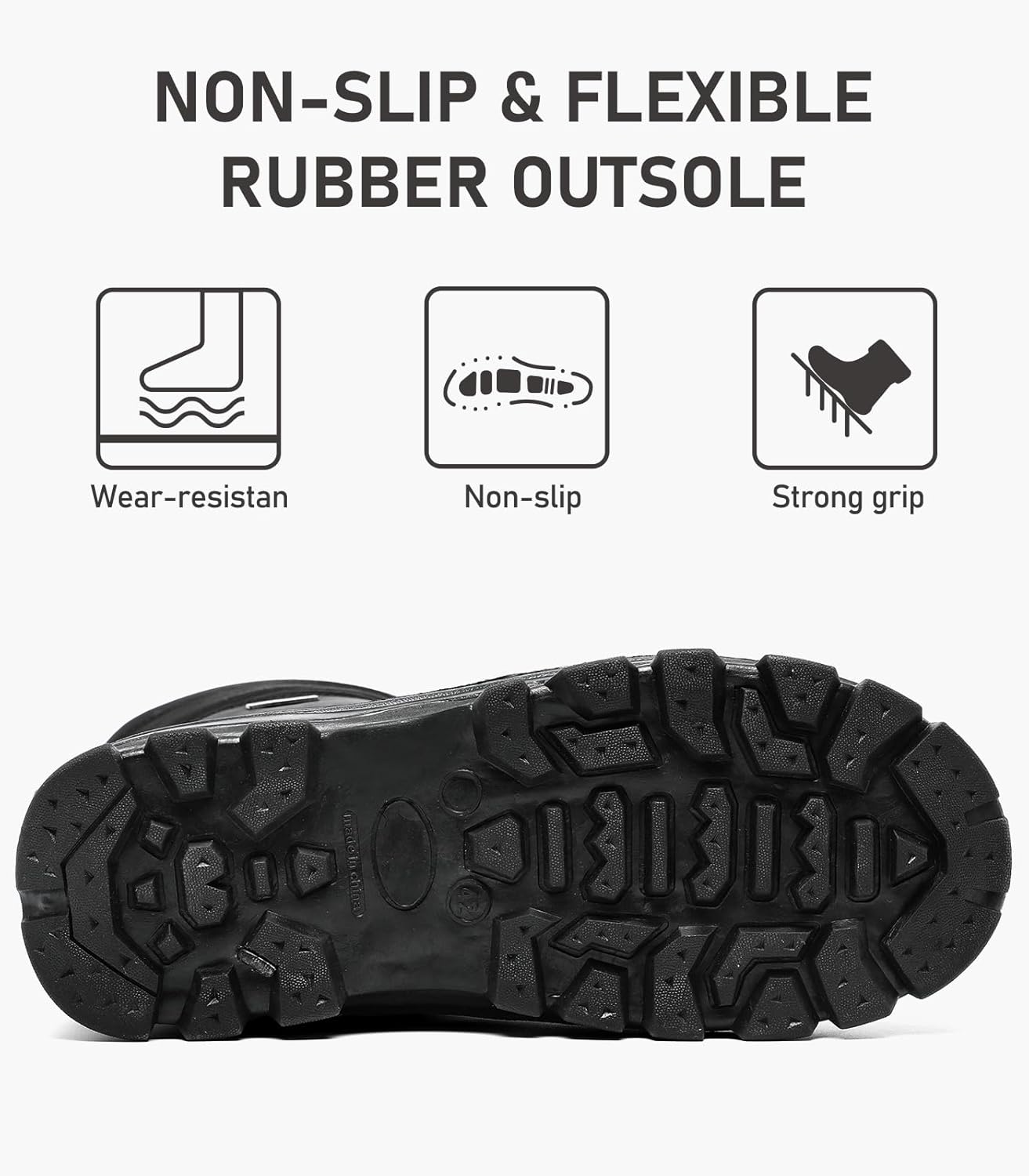 Durable Rubber Outsole: The rugged rubber outsole provides exceptional traction, ensuring stability and grip on slippery or uneven surfaces. Perfect for outdoor adventures, these boots are built to last through all seasons.