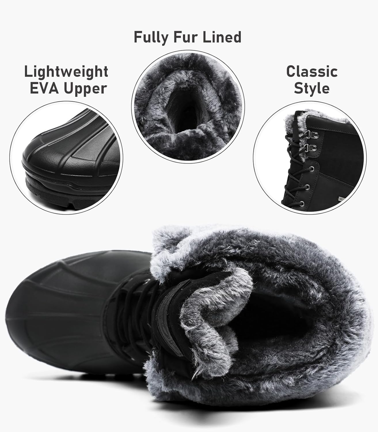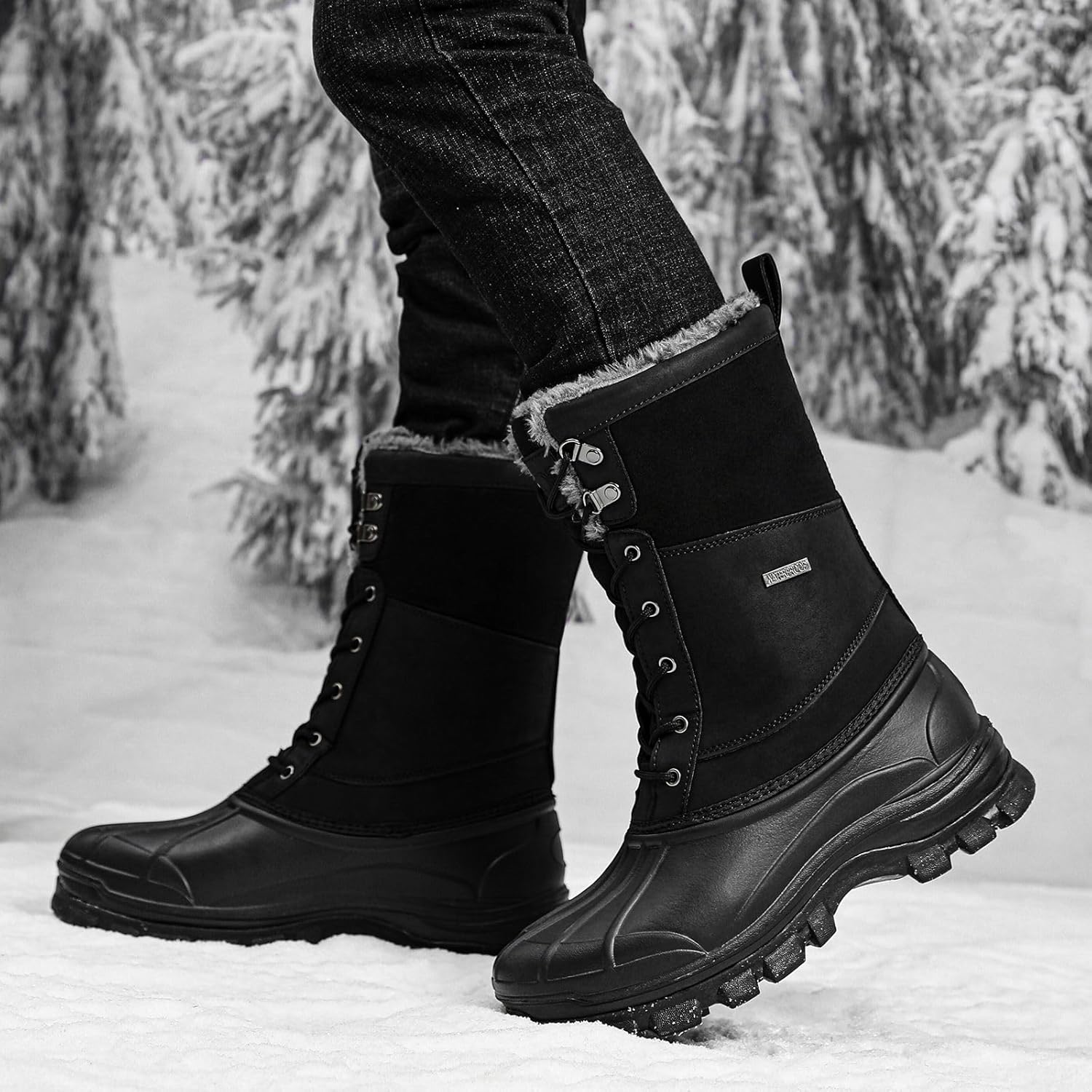 GoodValue Mens Waterproof Snow Winter Duck Boots Insulated Warm Fur Lined Non Slip Rubber Hiking Work Boots Casual Outdoor