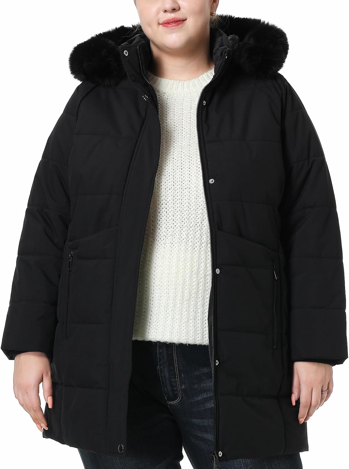 Pefflarge women's plus size down jacket is made from premium materials for durability and a quilted look for a feminine touch.The adjustable zipper and multiple pockets add to its functionality,making it easy to care for while ensuring you stay warm and cozy