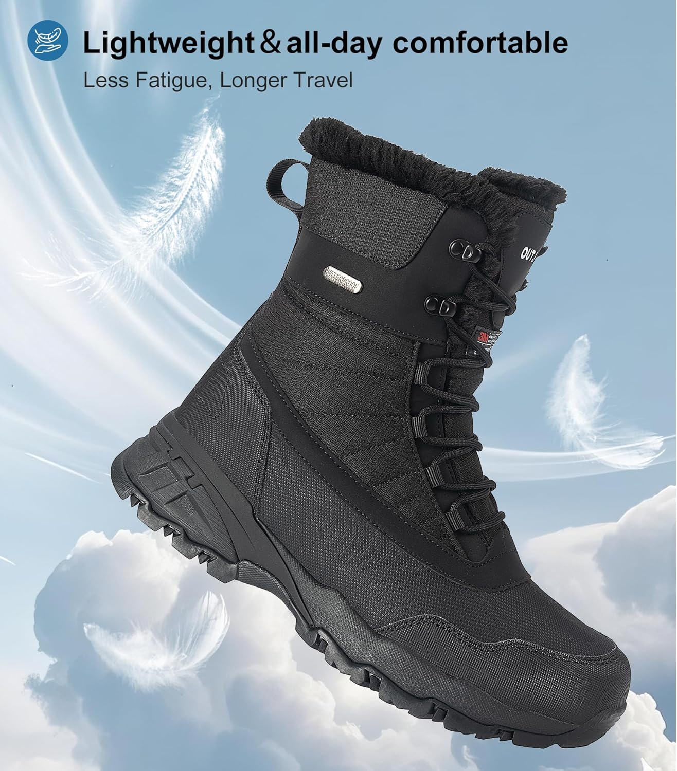 OUTJET Men’s Waterproof Winter Snow Boots Insulated Warm Fur Lined Lightweight & Comfortable