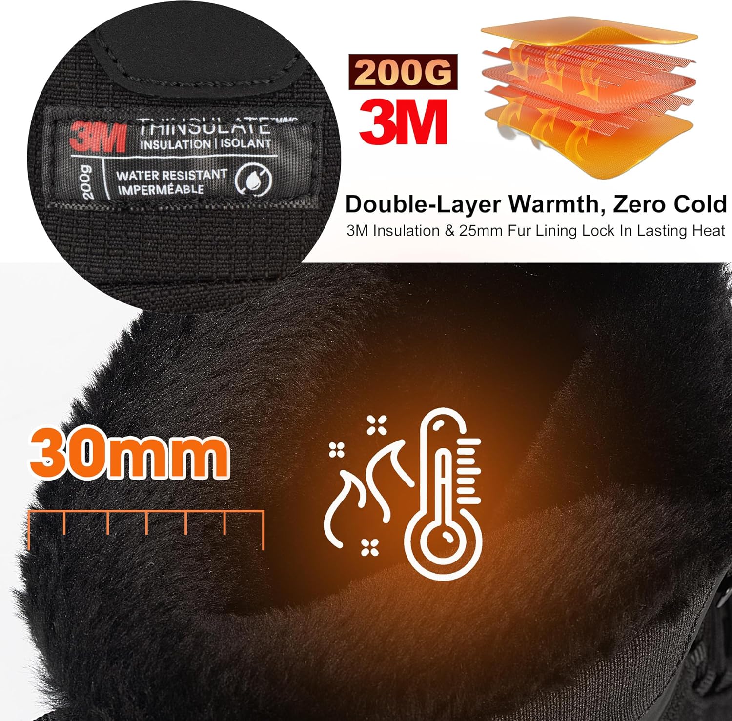 【Advanced Warmth & Comfort】Equipped with 200g 3M Thinsulate insulation and a soft faux-fur lining, these snow boots retain heat efficiently to keep your feet warm and comfortable in freezing temperatures. Perfect for winter work, hiking, or daily wear in cold weather