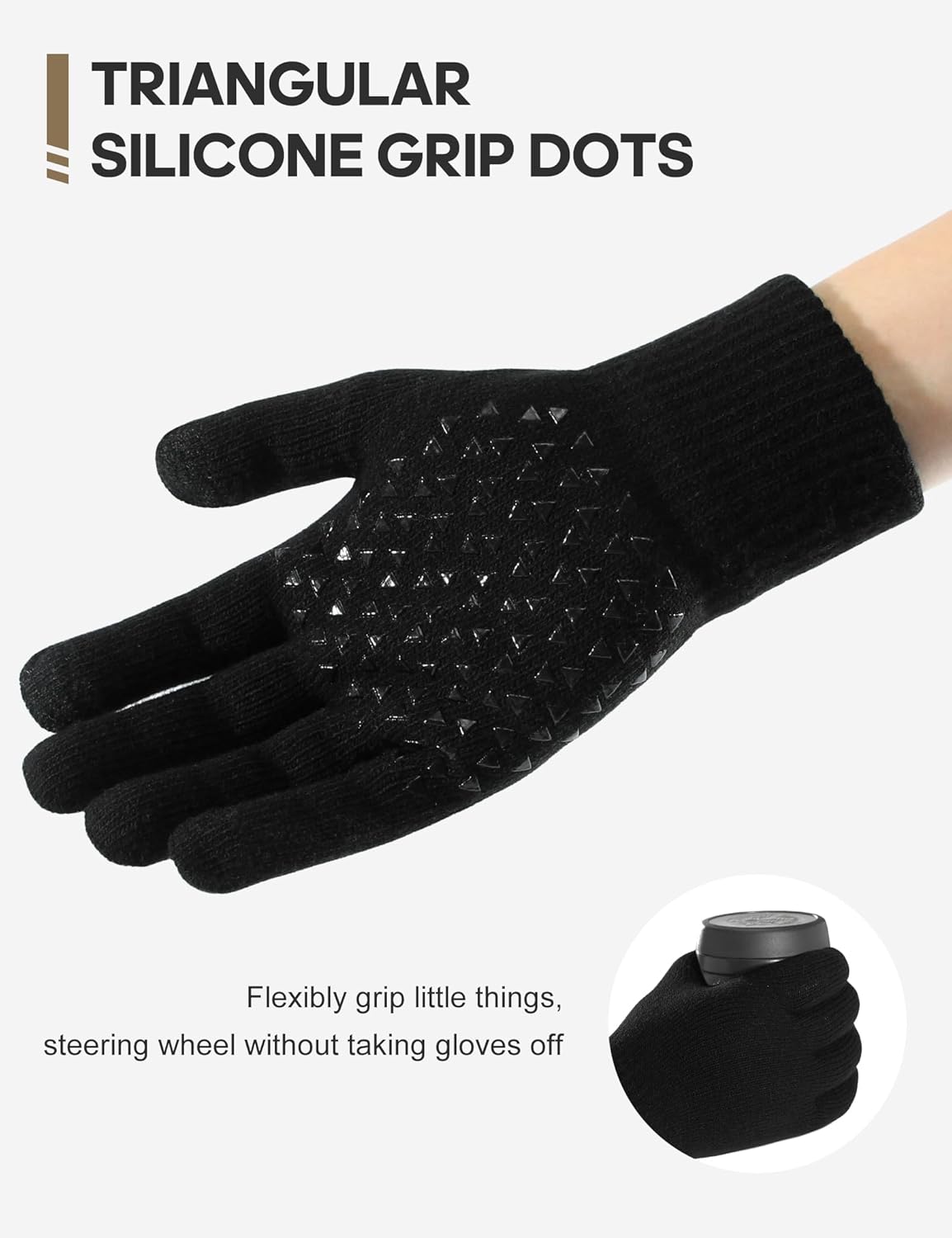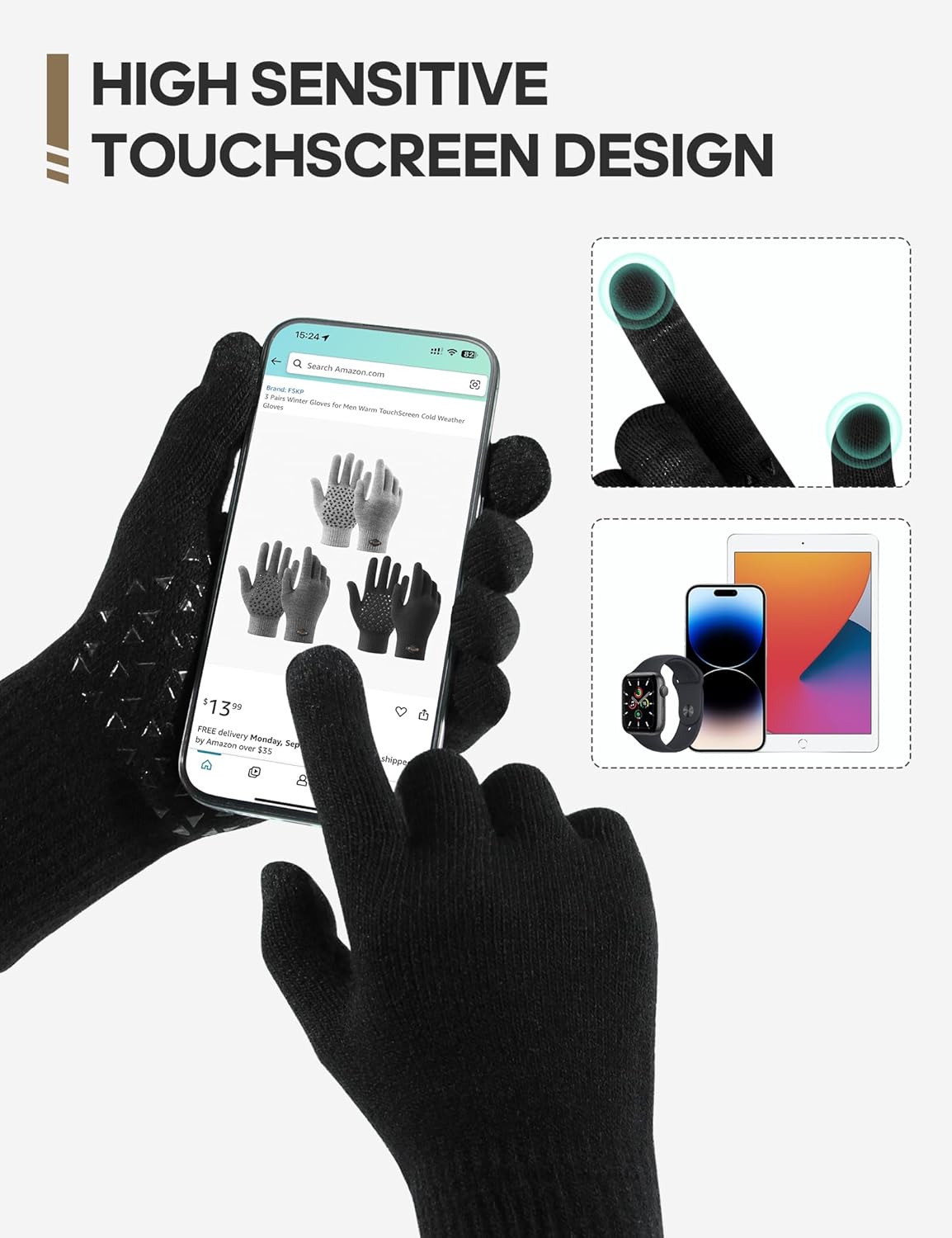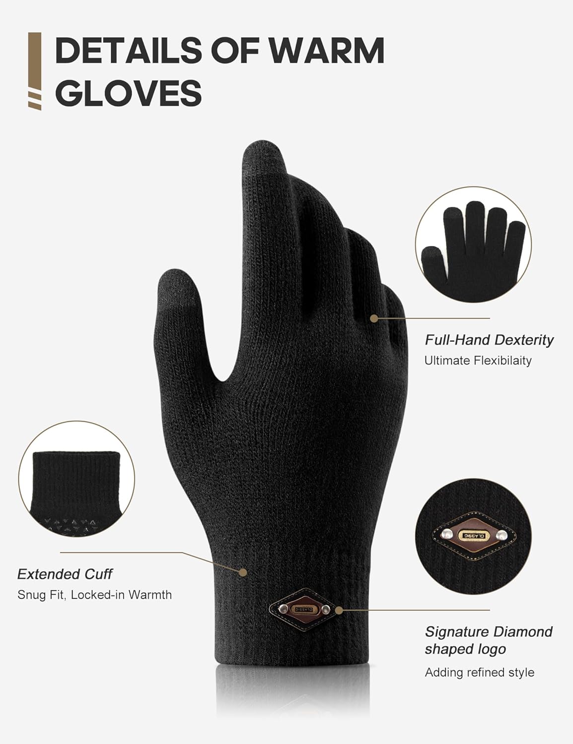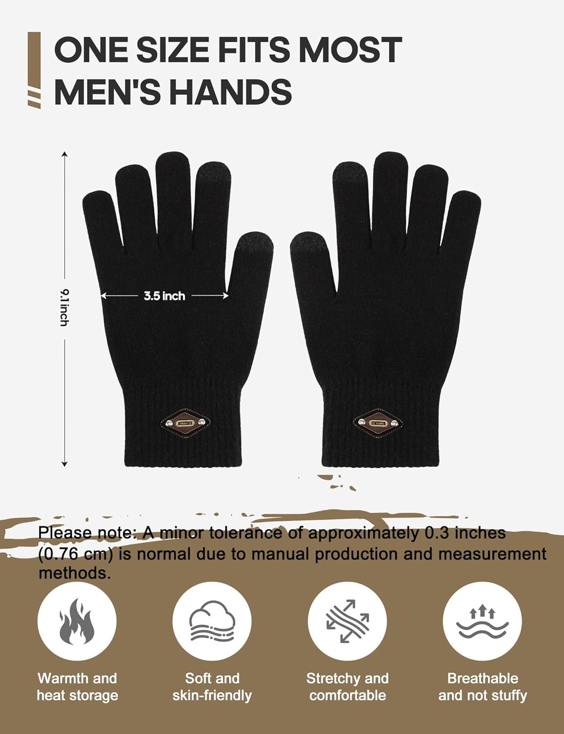 High sensitive touchscreen:Never sacrifice warmth for convenience with these stylish men's knit gloves,designed for seamless connectivity in cold weather.The innovative touchscreen compatible fingertips (thumb and index finger) let you effortlessly swipe,tap,and scroll on your smartphone or tablet.