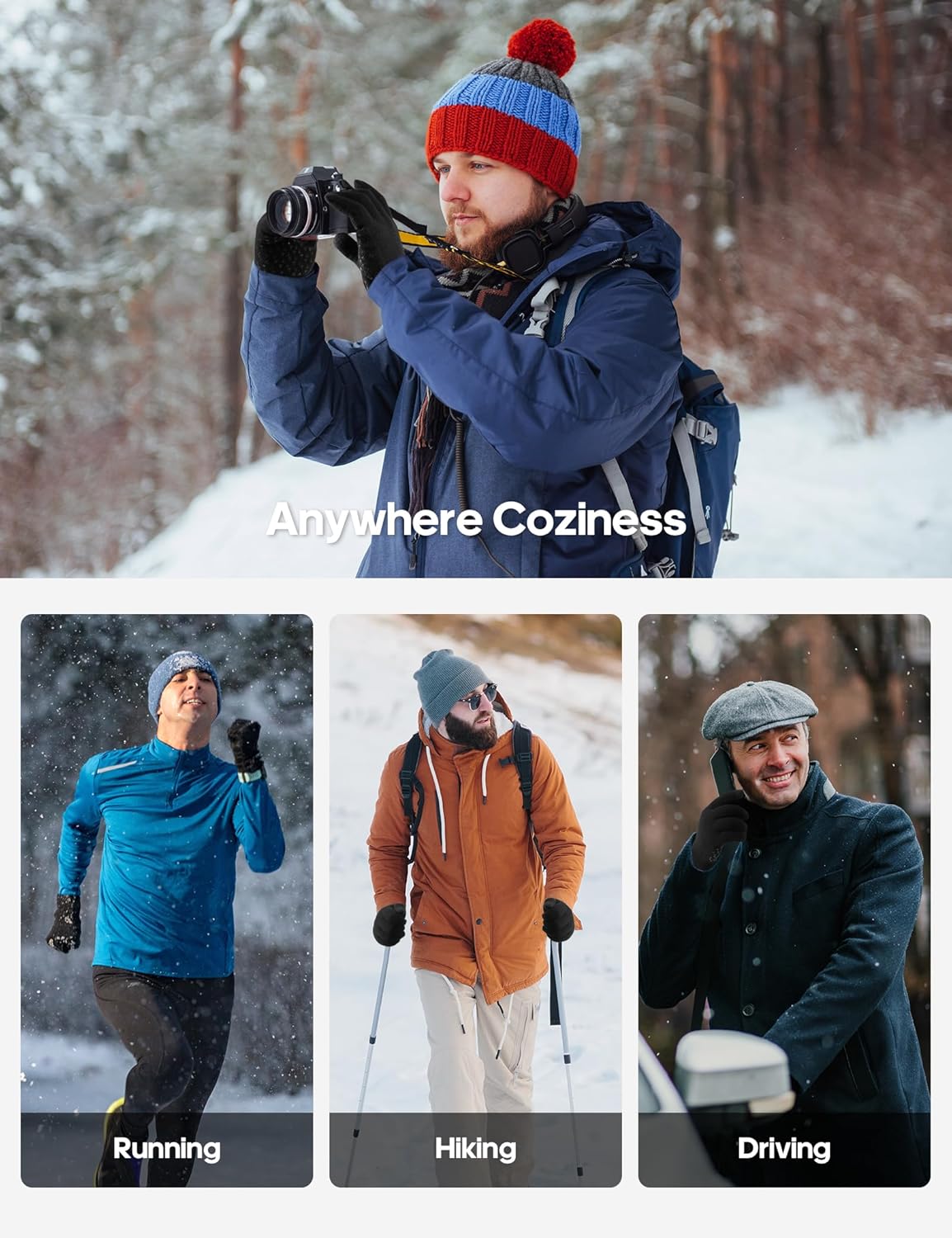 Ultimate Comfort & Flexibility:Engineered for coziness and freedom of movement,our winter gloves feature a high-performance acrylic fabric that delivers lightweight warmth without bulk,this soft fabric combination offers breathable comfort-preventing sweaty hands while keeping cold winds out.