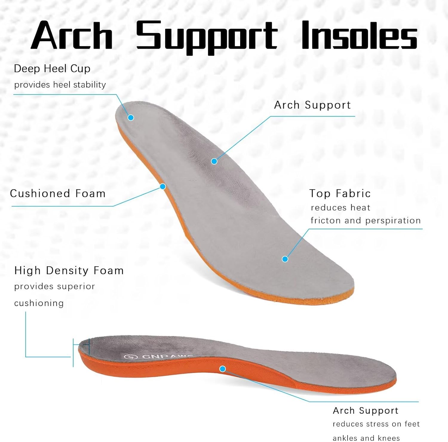 Arch-Support Insole:The detachable cotton shoe pad provides excellent arch support for the natural contour of the foot. Targeted heel cushioning improves overall comfort by reducing the pressure on the foot with each step.