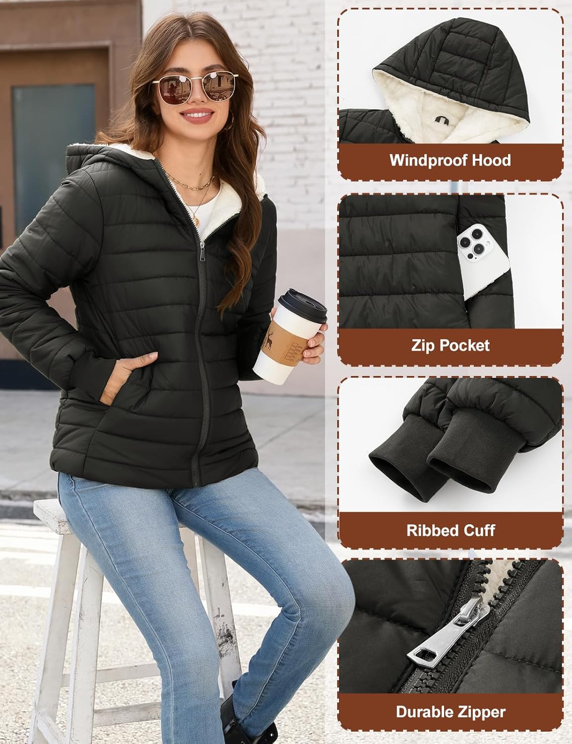 【Winter Coats for Women】Outer shell of winter jackets for women is made of 100% polyester, durable, windproof. Stay warm in the fall and winter with this thick and comfortable womens fleece lined winter coats with non-removable hood. This stylish winter quilted coats for women will be a classic outfit that can be added to your winter wardrobe!