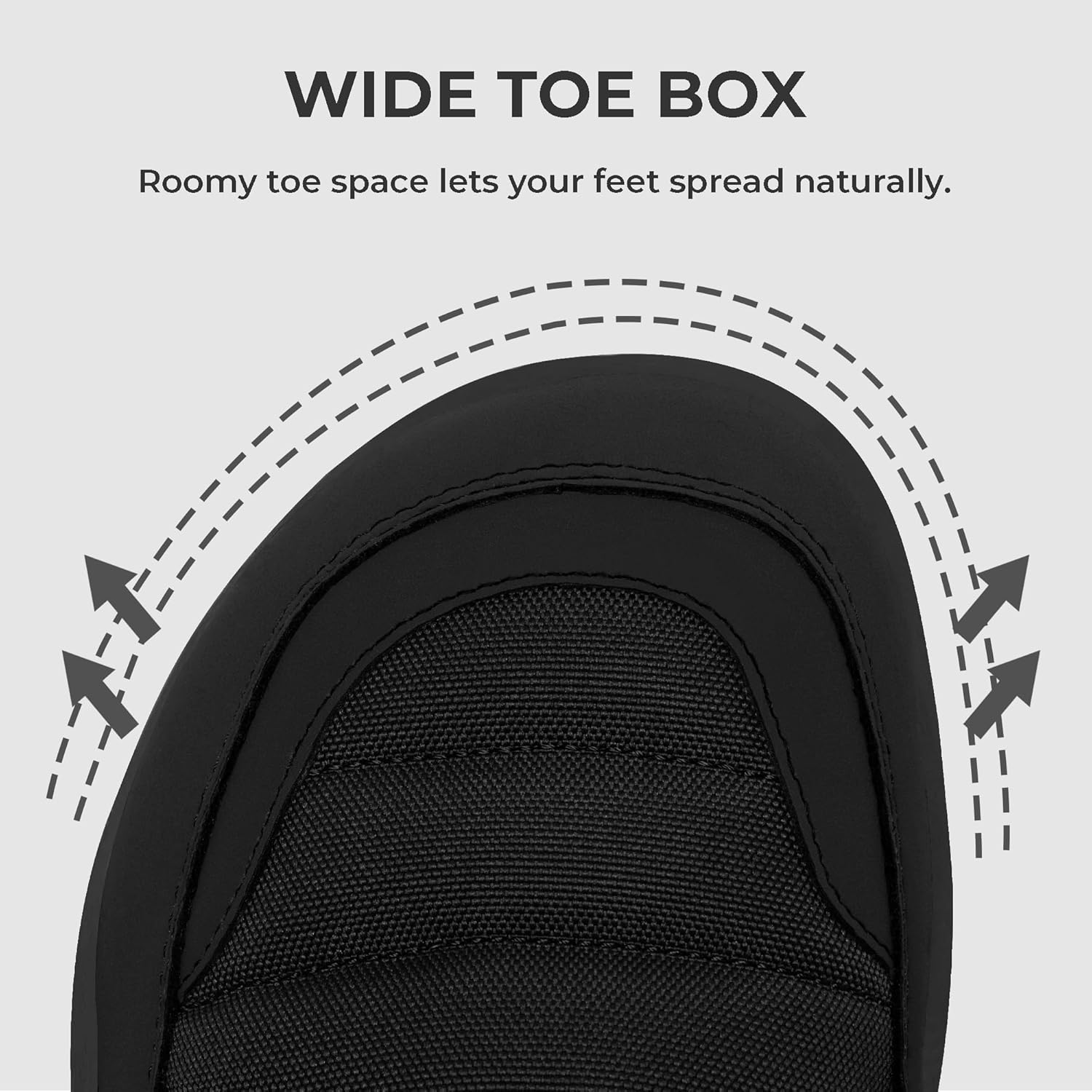 Wide Toe Box- Lets your toes spread naturally, enhancing balance and reducing fatigue during snowy walks, icy commutes, or frosty errands. Stay cozy all winter.